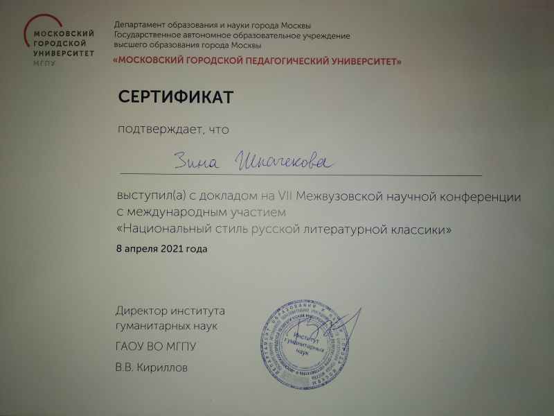 С 5 октября по 16 ноября 2023 года наш докторант Михаил Кипчатов успешно прошел учебную стажировку в Красноярском государственном педагогическом университете им. В. П. Астафьева. В рамках своей стажировки докторант посещал лекции и семинары по предметам «Славянская мифология» и «Устное народное творчество», а также индивидуальные консультации с доцентом, кандидатом филологических наук Новоселовой Нелли Александровной.
