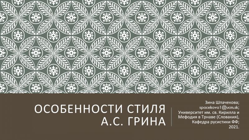 Благодарю кафедру русистики Университета Свв. Кирилла и Мефодия в Трнаве за предоставленную возможность.