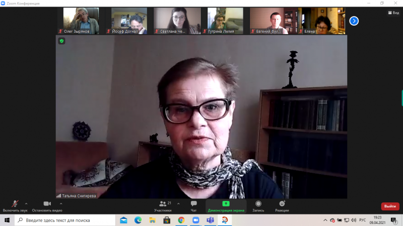 10 октября 2020 г. на платформе polit.ru в рамках второго сезона серии семинаров “Сильные тексты” прошла онлайн-встреча, посвященная творчеству Елены Шварц. В дискуссии приняла участие наша докторантка Медуха Олеся. Серия открытых семинаров предлагает участникам пространство для увлекательной дискуссии о выбранных текстах и проходит несмотря на карантинные ограничения. В этот раз обсуждали стихотворение “Что меня бросило в объятия Диомида?”. Выступающие предложили разные подходы и методы его прочтения, развилась активная дискуссия, что в очередной раз подтвердило актуальность изучения поэзии, а также необходимость её терапевтического эффекта в условиях локдауна.