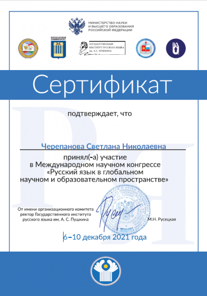 •ректор института русского языка им. А. С. Пушкина – Маргарита Николаевна Русецкая;