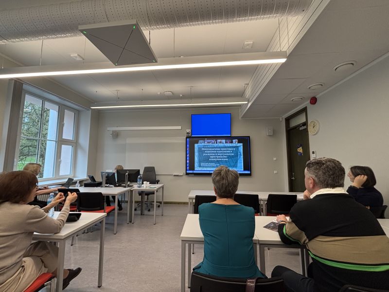 Во время пребывания в Тарту мне удалось поработать в библиотеке Тартуского университета, больше узнать о положении русского языка в стране пребывания от руководителя Отделения славистики Института иностранных языков и культур Татьяны Николаевны Степанищевой, а также принять участие в работе аспирантского семинара – спецкурса Романа Григорьевича Лейбова. Интересной особенностью этих встреч является тот факт, что занятия объединяют не только аспирантов всех курсов данной кафедры, но и открыты для зарубежных молодых ученых. В рамках сессий обсуждаются как научные изыскания аспирантов, так и текущая работа руководителя семинара, поощряется свободный обмен мнениями и замечания по существу.