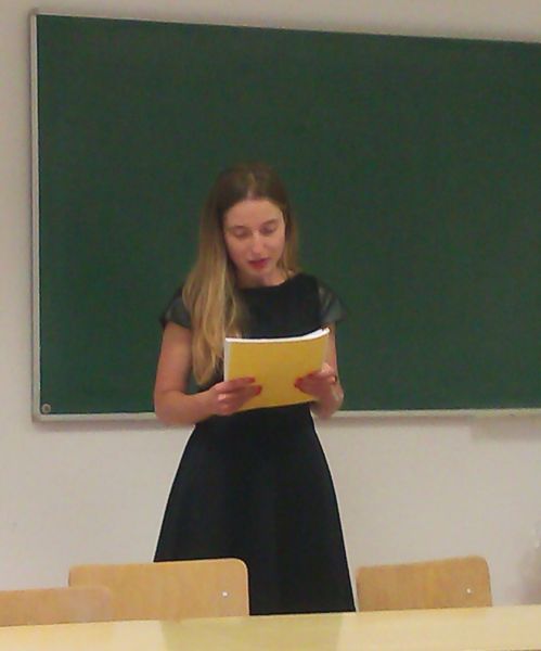 Súťaže sa zúčastnila aj absolventka magisterského štúdia Henrieta Kolníková, ktorá obsadila 1. miesto. Predstavila obraz ideálneho učiteľa a porote prečítala List Tatiany Oneginovi.