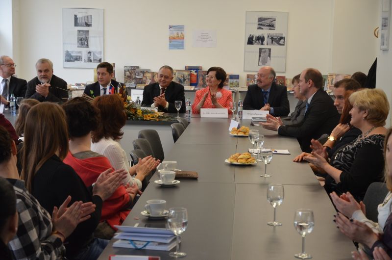 Rektor Lipeckej štátnej technickej univerzity, s ktorou katedra rusistiky FF UCM aktívne spolupracuje, doktor A.K. Pogodajev poblahoželal Univerzite sv. Cyrila a Metoda k dvadsiatemu jubileu. Blahoželanie odovzdala docentka Marina Stanislavovna Matycina z katedry cudzích jazykov, ktorá sa stretla s rektorom UCM doc. Dr.h.c. Ing. Jozefom Matúšom, CSc., prorektorkou pre zahraničné styky doc. PhDr. Ruženou Kozmovou, CSc., prorektorom pre vedecko-výskumnú činnosť prof. Ing. Jozefom Lehotayom, DrSc. a dekankou FF UCM doc. Mgr. Katarínou Slobodovou Novákovou, PhD. Na stretnutí sa diskutovalo o otázkach ďalšej spolupráce, konkrétne o otázke mobility študentov a vyučujúcich, o plánoch spoločných vzdelávacích programov, účasti na grantoch, ktoré organizujú akademické mobility, o publikácií vedeckých článkov v časopisoch a mnohom inom. Slávnostného programu jubilea sa zúčastnil aj mimoriadny a splnomocnený veľvyslanec Ruskej Federácie v Slovenskej republike pán L.A. Fedotov.