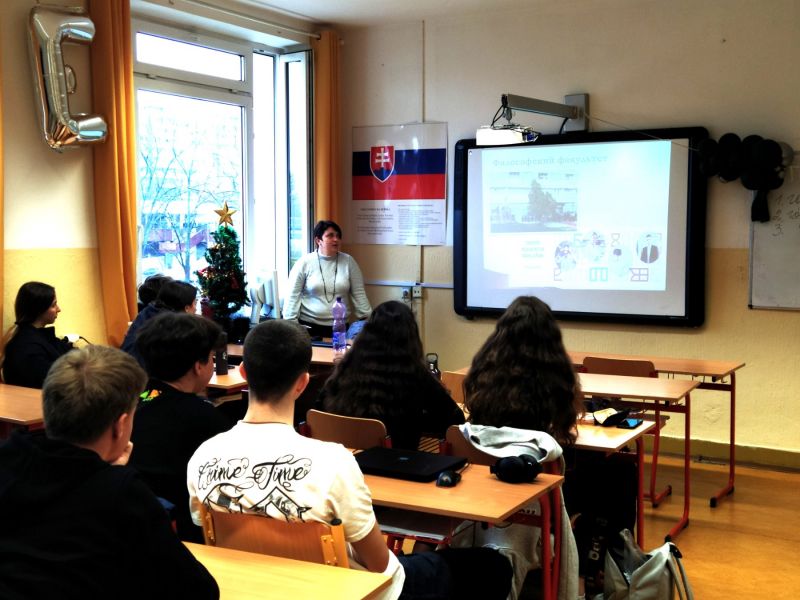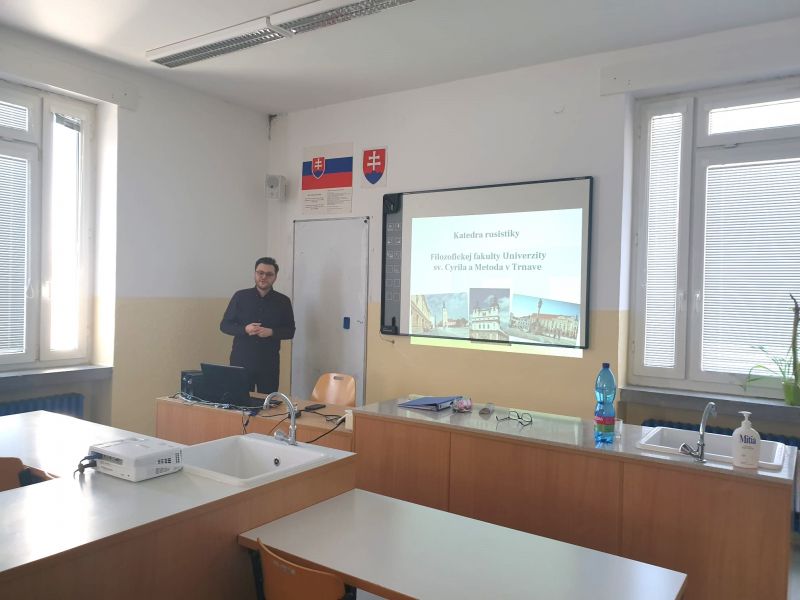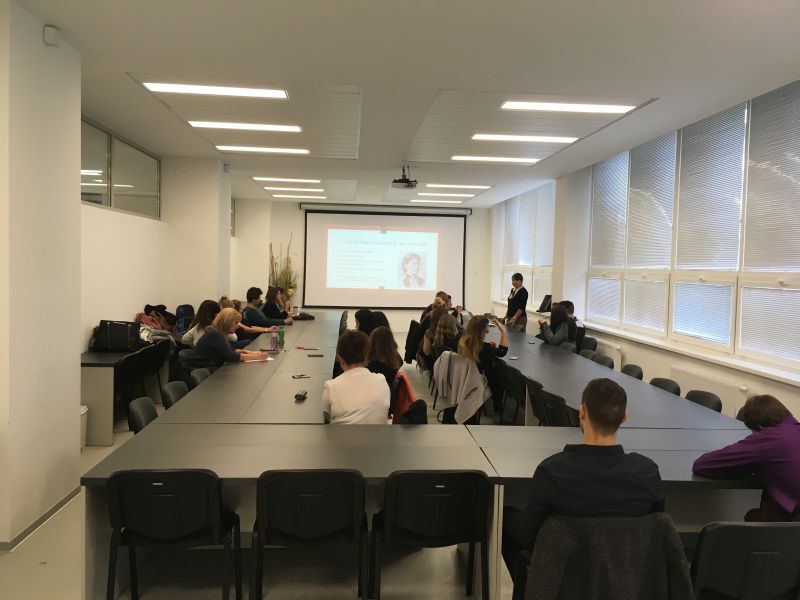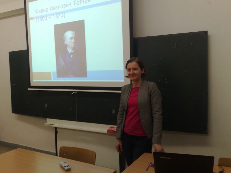 5. decembra 2017 mali študenti Katedry rusistiky FF UCM možnosť zúčastniť sa na zaujímavej prednáške Dr. Joanny Dziedzic z Ústavu východoslovanskej filológie Filozofickej fakulty Univerzity v Bialystoku, venovanej F. I. Ťutčevovi. Prednáška zachytávala nie len samotné literárne dielo významného predstaviteľa ruskej poézie, ale i spoločensko-historickú situáciu v súvekom Rusku s presahmi na tematický kontext inonárodných literatúr. Na základe biografických a historických údajov zostavila Dr. Dziedzic orientačnú hodnotovú štruktúru diel, ktorú ilustrovala konkrétnymi úryvkami básní. Dr. Ewa Pańkowska z toho istého ústavu si pripravila prednášku o súčasnom ruskom spisovateľovi Viktorovi Pelevinovi, o jeho tvorbe a s vecným a precízne podaným komentárom. Obe prednášky nemalou mierou prispeli k tomu, aby študenti mohli vnímať F. I. Ťutčeva v rámci 19. storočia a V. Pelevina v rámci 20. a 21. storočia nie len ako konvenčné heslá v slovníkoch spisovateľov, ale ako plastické tvorivé osobnosti svojej doby.