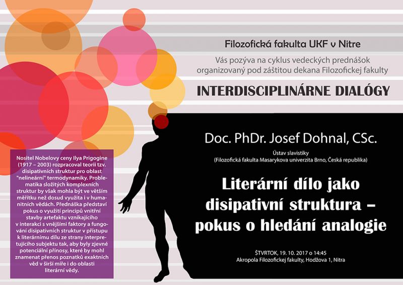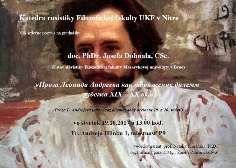 19. októbra 2017 na Filozofickej fakulte UKF v Nitre odznel cyklus prednášok doc. PhDr. Josefa Dohnala, CSc. na tému Проза Леонида Андреева как отражение дилемм рубежа XIX – XX вв. V ten istý deň sa okrem toho uskutočnila aj mimoriadna prednáška pána docenta s názvom Literární dílo jako disipativní struktura – pokus o hledání analogie, opierajúca sa o teóriu tzv. disipatívnych štruktúr pre oblasť „nelineárnej“ termodynamiky, ktorú rozpracoval nositeľ Nobelovej ceny – Ilya Prigogine. Prednáška predstavovala aplikáciu poznatkov z exaktných vied do oblasti literárnej vedy.