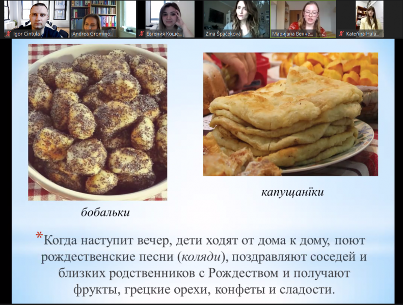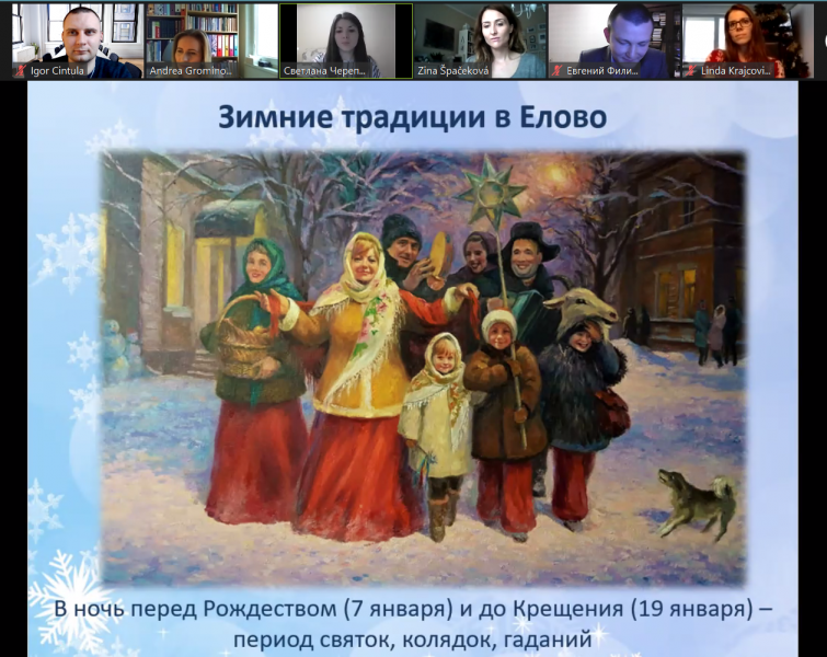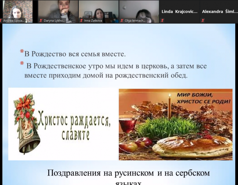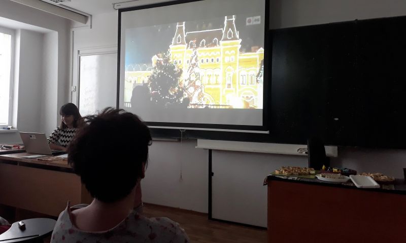 11. decembra 2018 sa na Katedre rusistiky FF UCM konalo predvianočné stretnutie študentov a pedagógov s názvom Ruská večerinka. Do zaujímavého kvízu na témy Vianočné tradície a Vianočný stôl sa aktívne zapojili poslucháči 3. ročníka bakalárskeho a 2. ročníka magisterského štúdia. Študenti prejavili svoje tvorivé schopnosti aj v ďalších kreatívnych súťažiach s vianočnou tematikou. Víťazi boli odmenení suvenírmi z Ruska. Príjemnú atmosféru dotvoril spev vianočných piesní a novoročné priania všetkých zúčastnených, ale aj pitie čaju či rôzne tradičné sladkosti z ruskej proveniencie.