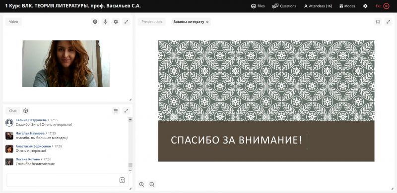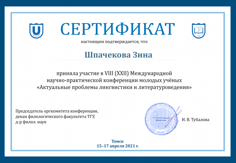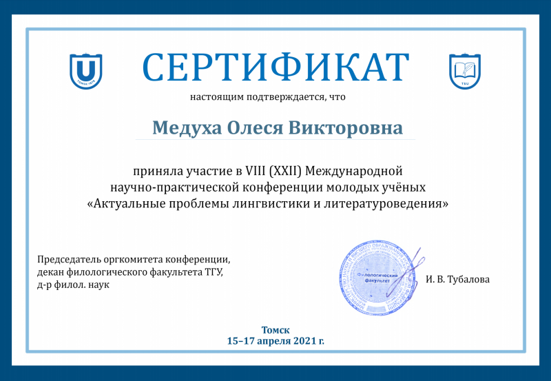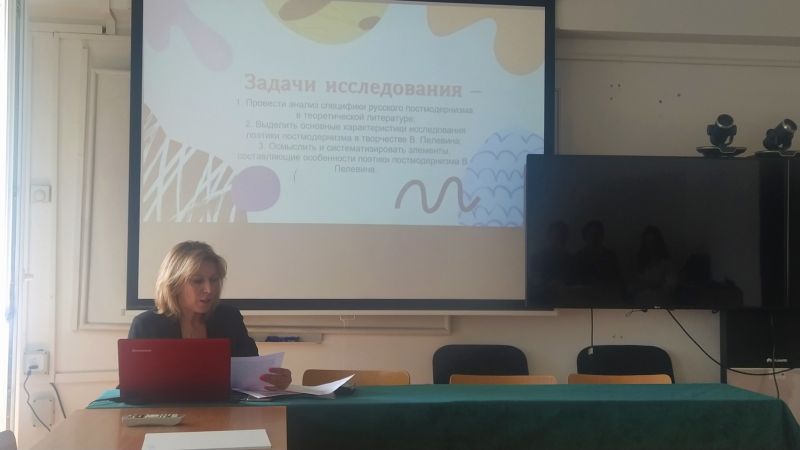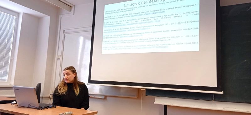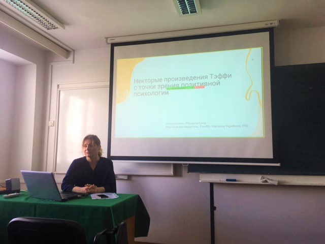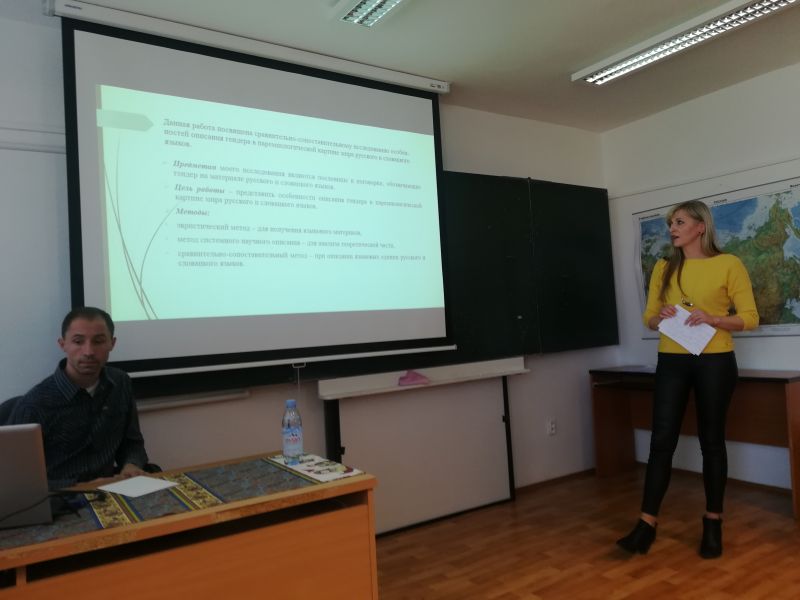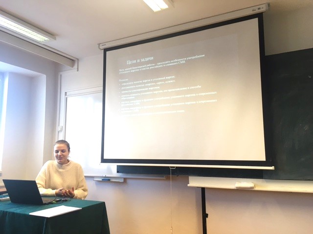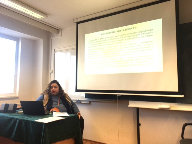 Коллеги проявили интерес к моей научной работе по теме диссертации и пригласили выступить перед студентами с презентацией «Лингвокреативная специфика комментариев в социальной сети YouTube»; кроме того, мне удалось получить консультацию Елизаветой Григорьевной Сосновцевой и обсудить перспективы разработки интересующей меня научной проблемы.