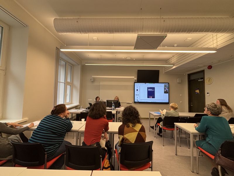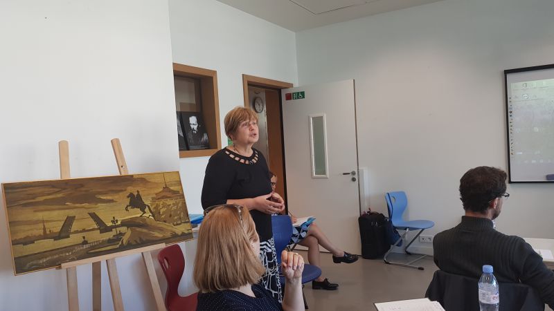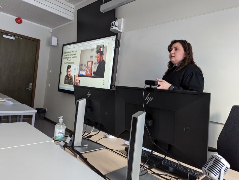 Во время пребывания в Тарту мне удалось поработать в библиотеке Тартуского университета, больше узнать о положении русского языка в стране пребывания от руководителя Отделения славистики Института иностранных языков и культур Татьяны Николаевны Степанищевой, а также принять участие в работе аспирантского семинара – спецкурса Романа Григорьевича Лейбова. Интересной особенностью этих встреч является тот факт, что занятия объединяют не только аспирантов всех курсов данной кафедры, но и открыты для зарубежных молодых ученых. В рамках сессий обсуждаются как научные изыскания аспирантов, так и текущая работа руководителя семинара, поощряется свободный обмен мнениями и замечания по существу.