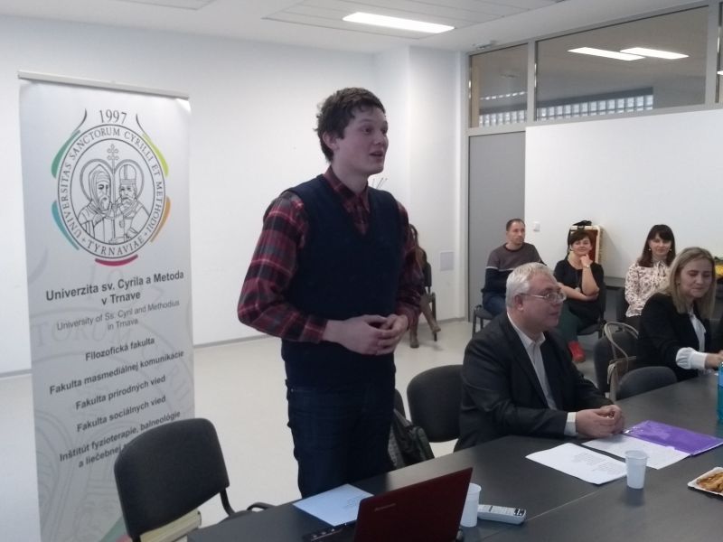 15. – 16. mája 2014 Katedra rusistiky FF UCM organizovala medzinárodnú vedeckú konferenciu s názvom Hlavné vývinové tendencie ruského jazyka a iných slovanských jazykov v súčasnom svete, na ktorej prezentovalo výsledky svojej vedecko-výskumnej činnosti vyše 120 kolegov-slavistov z Ruska, Ukrajiny, Taiwanu, Arménska, Nemecka, Bulharska, Česka, Slovenska a iných krajín. O kultúrny program sa postarali študenti Katedry rusistiky FF UCM, ktorí spestrili atmosféru konferencie recitáciou básní na počesť 200. výročia úmrtia ruského spisovateľa J. M. Lermontova a spevom ruských ľudových piesní. Okrem toho ponúkli účastníkom konferencie zaujímavé prednášky o kultúrnych pamiatkach mesta Trnava. Veríme, že toto podujatie sa stane tradíciou našej katedry a bude podnetným stretnutím filológov zo všetkých koncov sveta :)