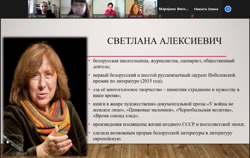 Doc. Verinová študentom zase rozšírila vedomosti o súčasnej ruskej poézii. Otázky, ktoré boli počas diskusie položené, veľmi ochotne zodpovedala. Katedre, ako darček, odovzdala svoju publikáciu, ktorú si študenti, rovnako ako aj iní členovia katedry, môžu s radosťou zapožičať a prečítať.