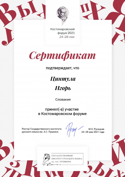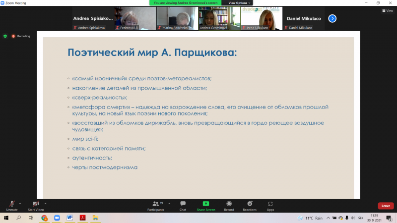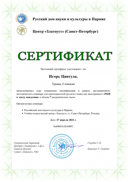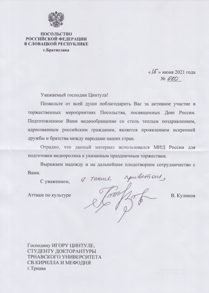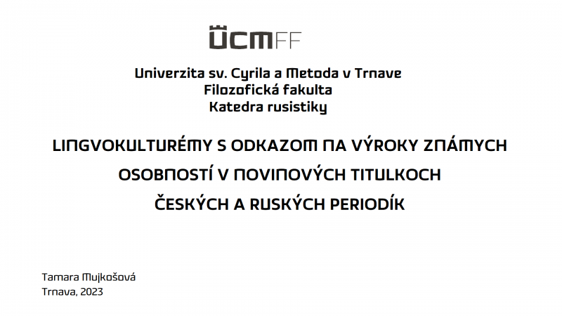 Благодарю кафедру русистики Университета Свв. Кирилла и Мефодия в Трнаве за предоставленную возможность.