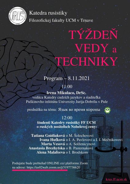 V rámci Týždňa vedy a techniky 2025 sa 11. novembra 2025 na Katedre rusistiky Filozofickej fakulty UCM v Trnave uskutočilo podujatie venované súčasným vedeckým i kultúrnym témam.