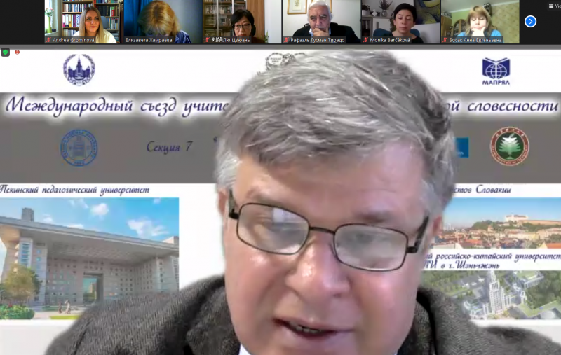21-28 октября 2015 г. в Москве, в Доме русского зарубежья им. А. И. Солженицына проходил заключительный этап Международного конкурса "Лучший учитель русской словесности зарубежья". В жюри конкурса принимала участие профессор кафедры русистики UCM Е. Маркова. Этот конкурс проходил в несколько этапов в течение года, в конкурсе участвовали многие преподаватели школ, гимназий, университетов из разных стран мира, в результате чего к заключительному этапу были отобраны 8 лучших преподавателей, ими оказались представители Болгарии, Испании, Австрии, Китая, Казахстана, Молдовы, Беларуси, Таджикистана. Испанию представлял член Президиума МАПРЯЛ проф. Рафаэль Гусман, который победил в одной из номинаций. Участники представляли на суд жюри презентацию о своих учениках и достижениях по обучению русскому языку, а на следующий день давали урок русской литературы. Абсолютными победителями конкурса в этом году стали представители Китая, Молдовы и Беларуси. Этот конкурс проводится ежегодно и мы надеемся, что когда-нибудь в числе победителей окажутся и преподаватели русского языка из Словакии.