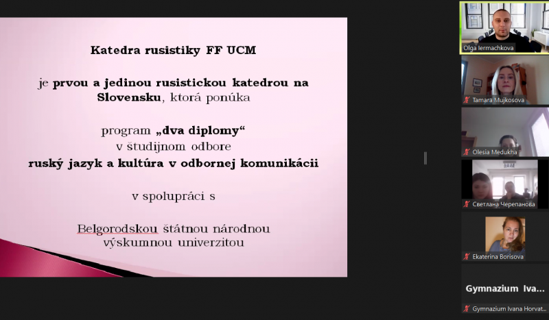 Katedru rusistiky FF UCM v Trnave reprezentovali doc. PhDr. Andrea Grominová, PhD., prof. PhDr. Josef Dohnal, CSc., doc. Mgr. Olga Iermachkova, PhD., PaedDr. Marianna Figedyová, PhD. a interná doktorandka katedry Mgr. Alina Urazbekova.
