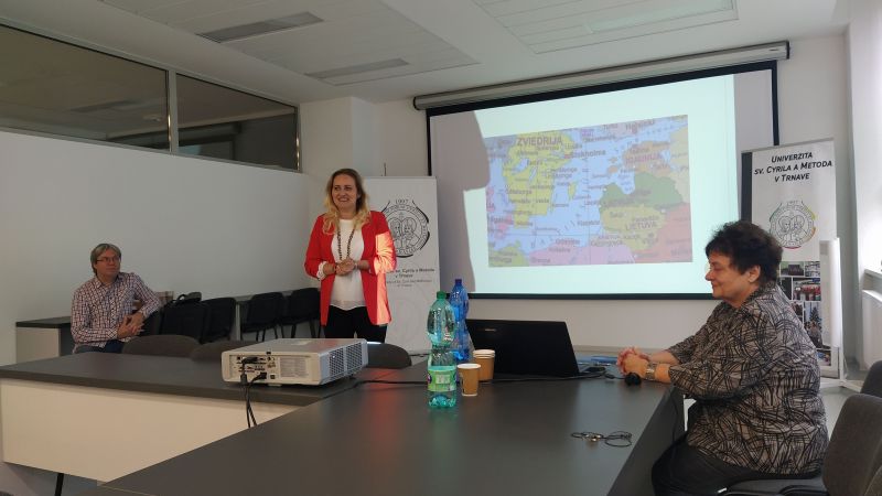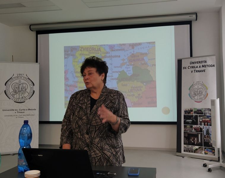 15. – 19. mája 2017 po prvýkrát odznel na Daugavpilskej univerzite v Lotyšsku cyklus prednášok člena Katedry rusistiky FF UCM v Trnave, a to PhDr. Andrey Grominovej, PhD., ktorý bol venovaný umeleckému modelu sveta v ruskej literatúre, počnúc 19. až po 21. storočie. Vo svojich prednáškach pre poslucháčov bakalárskeho i magisterského stupňa štúdia slovenská rusistka koncentrovala pozornosť na neustále sa meniaci umelecký model sveta najmä v poézii ruského postromantizmu až po súčasnú ruskú poéziu, v ktorej sa prelínajú verše s fotografiou. Okrem prednášok mala dr. Grominová možnosť diskutovať aj o mobilite študentov a pedagógov oboch univerzít či o otázkach rozvoja vzájomnej vedecko-výskumnej spolupráce v rámci programu Erasmus+. V ďalšom akademickom roku budú študovať na našej katedre „historicky“ prvýkrát aj študenti Daugavpilskej univerzity. Už teraz sa na nich tešíme.