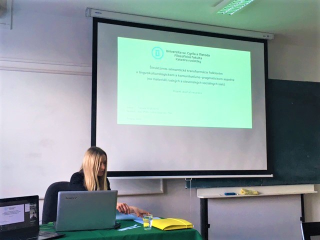 26. a 27. mája sa na Katedre rusistiky FF UCM v Trnave realizovali obhajoby bakalárskych a diplomových prác poslucháčov dennej i externej formy štúdia, ako aj záverečných prác poslucháčov rozširujúceho štúdia. Pestrosť prezentovaných lingvisticky a literárnovedne zameraných prác svedčí o rastúcom záujme študentov o nové témy vedeckého bádania v rámci slovenskej i svetovej rusistiky. Všetkým študentom, ktorí úspešne obhájili svoje práce a rovnako dobre vykonali štátne záverečné skúšky, srdečne blahoželáme a prajeme veľa úspechov v osobnom i pracovnom živote 😊.