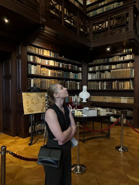 Podrobný výklad vedúcej múzea umožnil študentom rusistiky nahliadnuť do života Puškinových potomkov, autentickejšie sa zoznámiť so spisovateľom ako s „obyčajným“ človekom, prezrieť si exponáty dennej potreby jeho príbuzných. Z množstva spoznaného pripomíname rukopisnú báseň zakladateľa ruského romantizmu V. A. Žukovského Motýlik a kvety, výtlačky dobových časopisov, rodinné albumy, tematické cestovateľské herbáre, denníky a listy. V časti z literárneho výkladu mali študenti možnosť zorientovať sa v okruhu Puškinových spolupracovníkov, literárnych kritikov, učiteľov, spolužiakov, predchodcov a nasledovníkov. Múzeum A. S. Puškina však nevníma spisovateľovo dielo len ako relikviu ustrnutú v čase, ale vidí jej prínos a pokračovanie i do dnešných dní. Jasným príkladom tohto pohľadu je komplexné predstavenie prekladateľov A. S. Puškina do slovenčiny od prvopočiatkov až po súčasnú prekladateľskú generáciu zastúpenú J. Štrasserom.