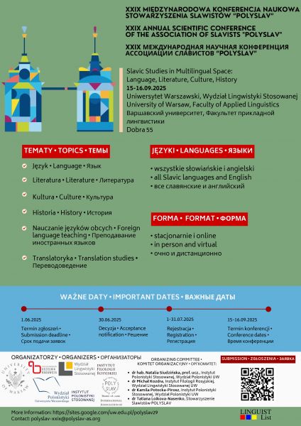 Náš doktorand Mgr. Samuel Žeňuch vystúpil na 29. ročníku medzinárodnej vedeckej konferencie Polyslav s príspevkom na tému Pragmatické aspekty medzijazykovej (rusko-slovenskej) homonymie na materiáli rusko-slovenských medzijazykových homoným. Konferencia sa konala 15. a 16. septembra 2025 v poľskej Varšave na pôde Varšavskej univerzity. Tohtoročná konferencia bola venovaná slavistike v multilingválnom priestore: jazyk, literatúra, kultúra, história (Slavic Studies in Multilingual Space: Language, Literature, Culture, History). Referenti sa aktívnou účasťou na konferencii stávajú aj členmi asociácie slavistov Polyslav. Účastníci konferencie si mohli vypočuť zaujímavé a podnetné príspevky z oblastí lingvistiky, literárnej vedy, histórie a kulturológie, vyučovania cudzích jazykov a translatológie cez prizmu slovanských jazykov a slavistiky. Tradícia konferencie Polyslav vznikla ako iniciatíva mladých slavistov na pôde Kostnickej univerzity (Konstanz, Nemecko) v roku 1997 a odvtedy sa organizuje každoročne. Na jednej z nich sa v roku 2011 počas plenárneho zasadnutia účastníci konferencie rozhodli oficiálne spojiť do občianskeho združenia Medzinárodná asociácia slavistov Polyslav, ktorého cieľom je koordinovať vedecké výskumy v oblasti slavistiky na medzinárodnej úrovni. Odkaz na program tohtoročnej konferencie a zborník abstraktov: https://sites.google.com/uw.edu.pl/polyslav29/program?authuser=0